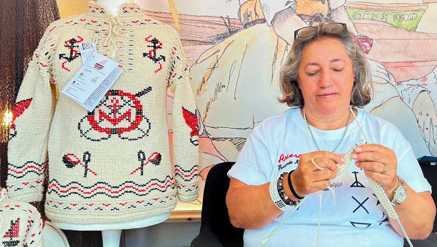 In addition to participating in many fairs, Fernanda has a strong online presence and an unparalleled ability to create emotional connections with her customers. She highly values interactions and stands out for personalising the entire creation process of her pieces, considering preferences, documenting each stage, sharing the progress of productions, and strengthening the bond between customers and Poveiro culture. “When they receive it, they feel immense joy. A customer from Lisbon, for example, couldn’t resist and put on the Camisola Poveira at the CTT post office, right after picking it up. He asked the staff to take photos and sent them to me, saying, ‘Mrs. Fernanda, I was dying to receive it!’ It’s a great pride!” she says enthusiastically. But as an experienced navigator of the arts, Fernanda knows that the sea rarely calms for the passage of large vessels. Like Santiago, the character from Ernest Hemingway’s “The Old Man and the Sea,” she faces the challenges of time, significant losses, exhaustion, and the complexities of artisanal work with determination. Fernanda believes that the future of craftsmanship depends on a new perception and appreciation by new generations, and that her work as a trainer is essential – representing the boat that carries courage and art and will continue to sail to keep the tradition alive.