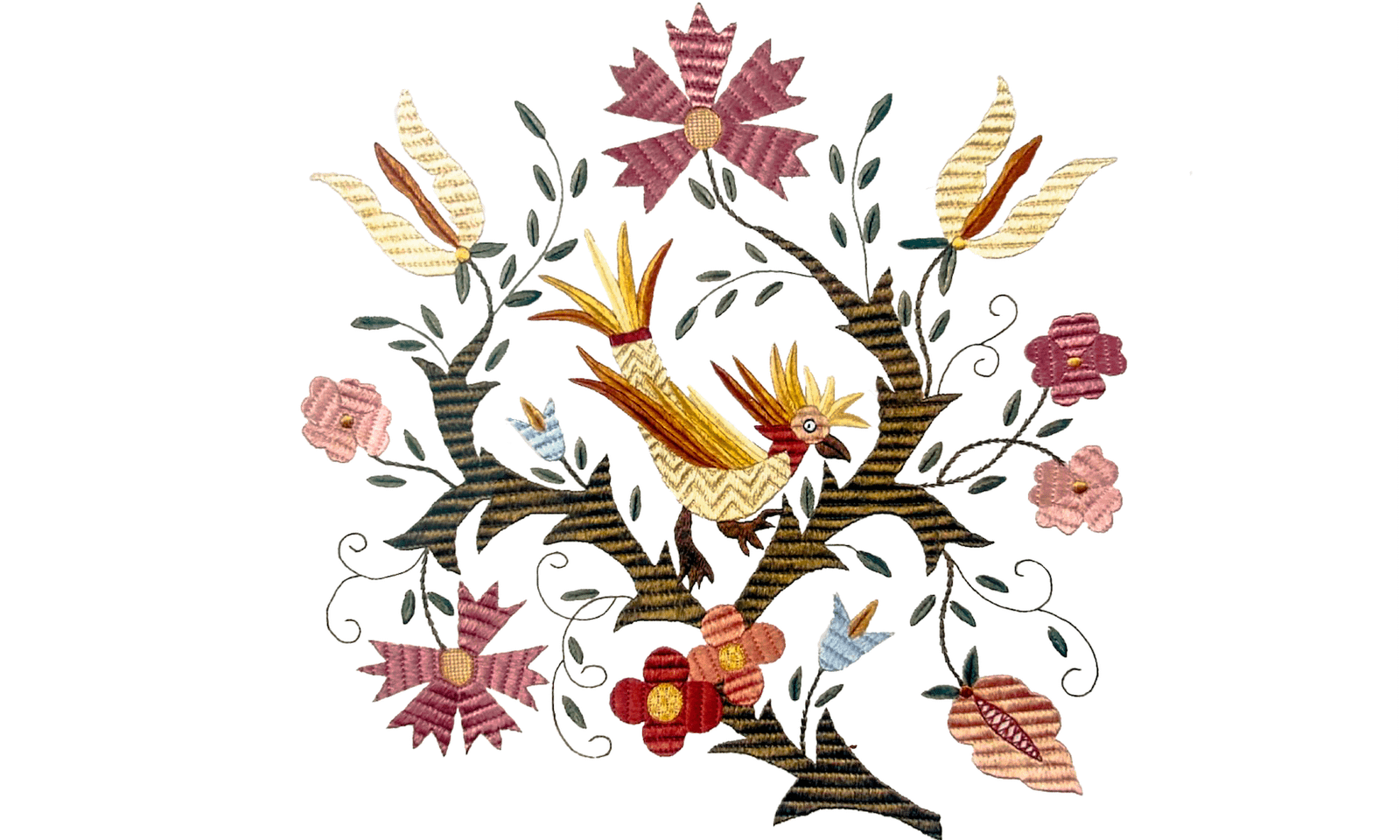 It would be impossible to depict the daily struggle and dedication of this artisan in the designs of a large quilt. Her home, turned into a studio from an early age, never knew idleness. Maria Alice worked more than 15 hours daily, every day of the week, and considered any moment not dedicated to embroidery a waste. Her two children grew up in an environment filled with embroideries and designs, becoming accustomed early on to the motifs of carnations and birds that, for many years, constituted the family's livelihood.