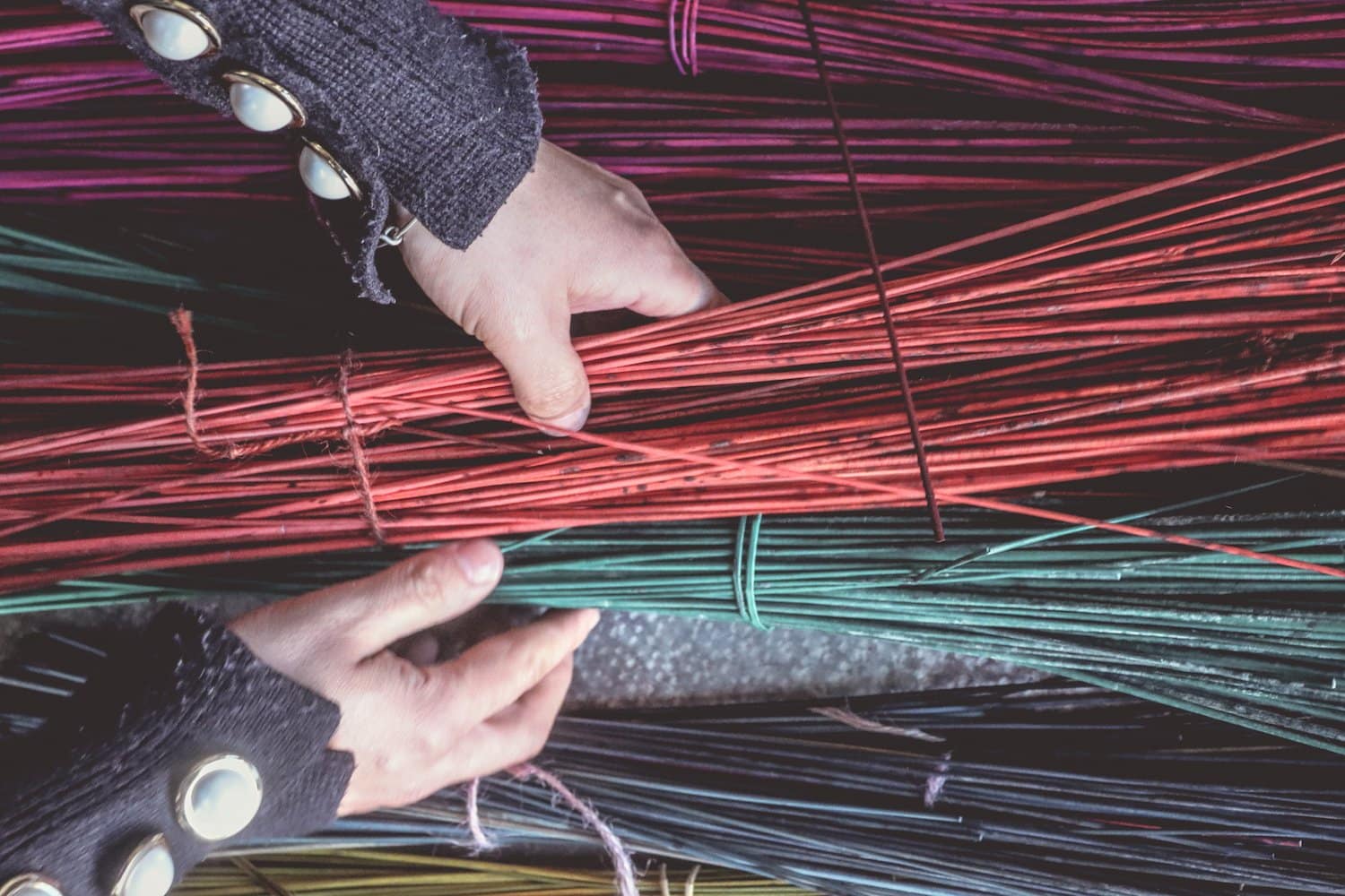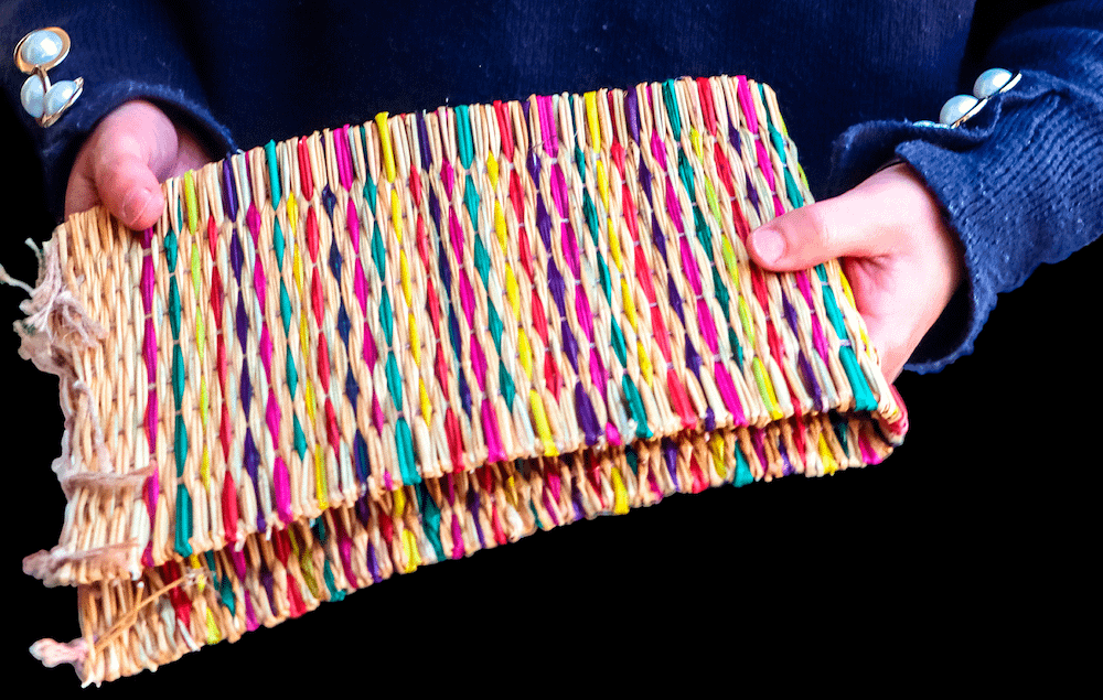 After cutting, a meticulous process of sun-drying follows, then sulfuring for whitening and preservation, and dyeing with aniline, which gives vibrant colours to the reed. Ready for weaving, it is intertwined with jute threads, creating strips that are later transformed into baskets and mats. The weaving technique includes loom warping, the insertion of the reed weft, and the creation of geometric and floral patterns, which are the distinctive hallmark of Forjães craftsmanship.